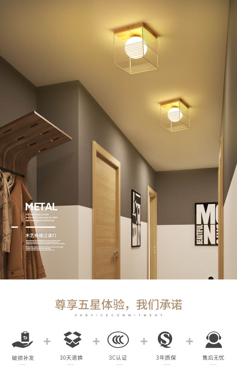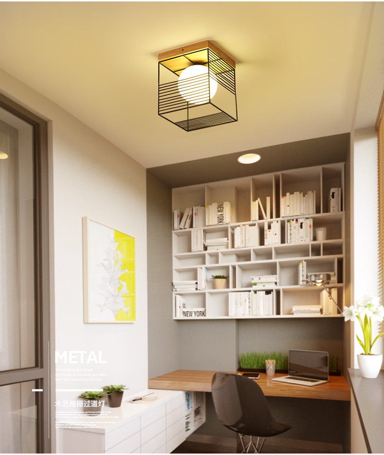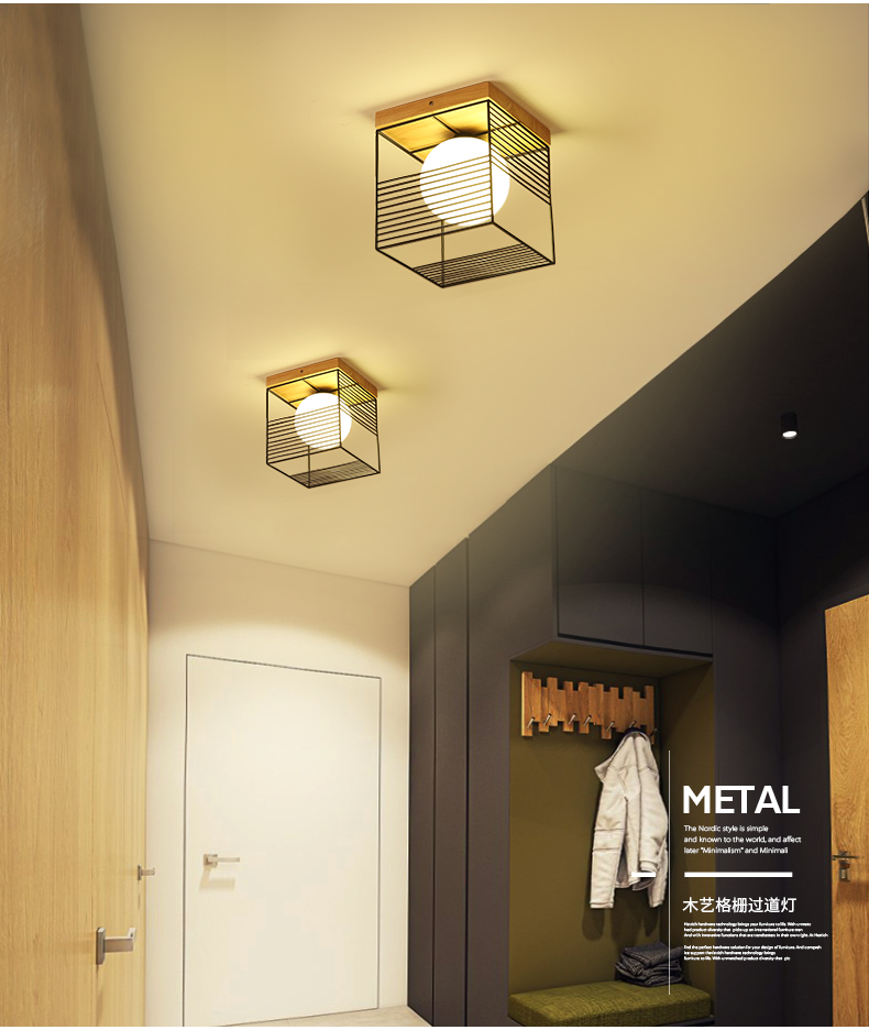 Best Seller 2019 New Nordic Indoor Wood Led Ceiling Light Fixture Luminaire Modern Iron Net Bedroom Corridor Hallway Mount Lamp Aisle Decor