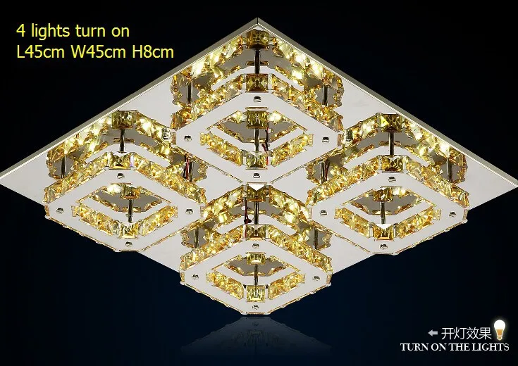 4 lights crystal led square ceiling lamp /amber crystal stainless steel led restaurant lamp /45*45*8cm LED*48W dining room lamp
