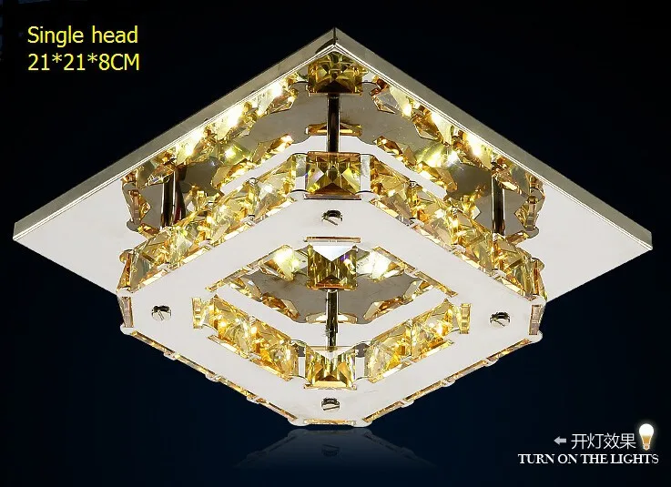 Sale Modern Amber crystal led square Ceiling Lights Fixture Led Plafon stainless steel aisle corridor lamp Lustres Home Deco