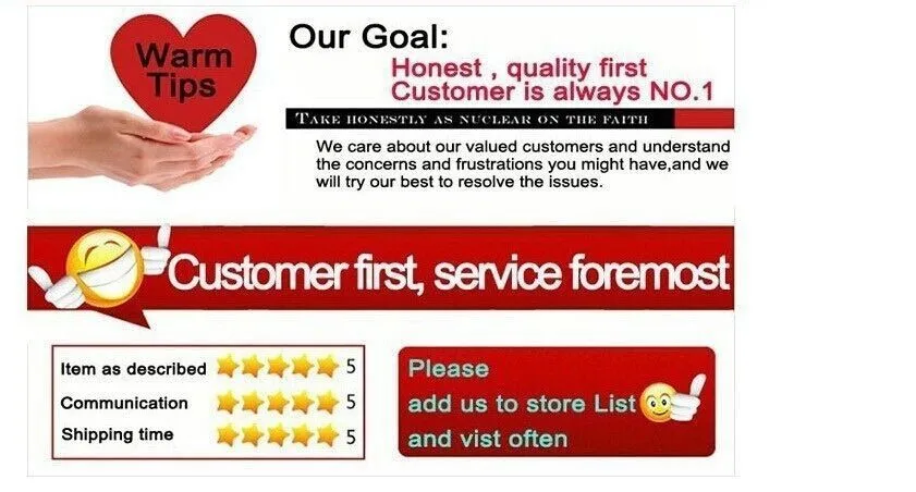 2 If you have any problem, please contact us first rather than leave negative feedback. Just a negative or neutral feedback will not solve the problem.