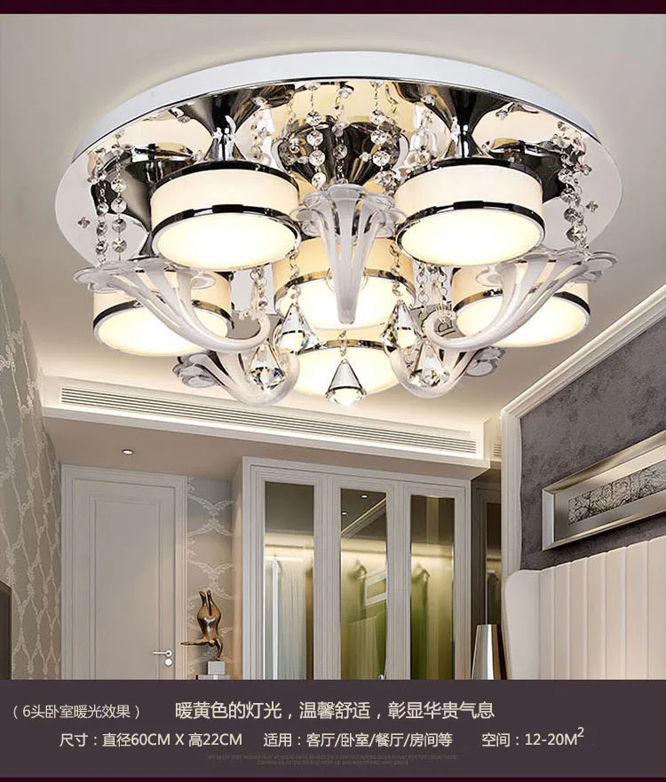 Best Price Luxury Crystal Ceiling Light Creative Living Room Bedroom Villa Light Iron 3/6/9 Head Ceiling Lights Remote control 6 colors ZA