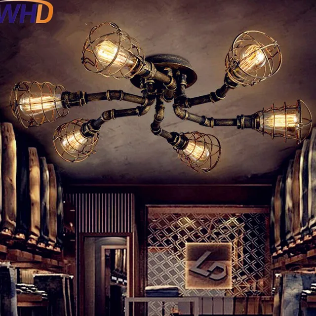 Buy IWHD Water Pipe Retro Vintage Ceiling Light Fixtures Living Room Edison Loft Industrial Ceiling Lamp Lights Lampara Techo
